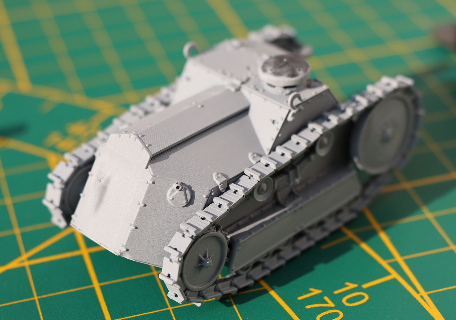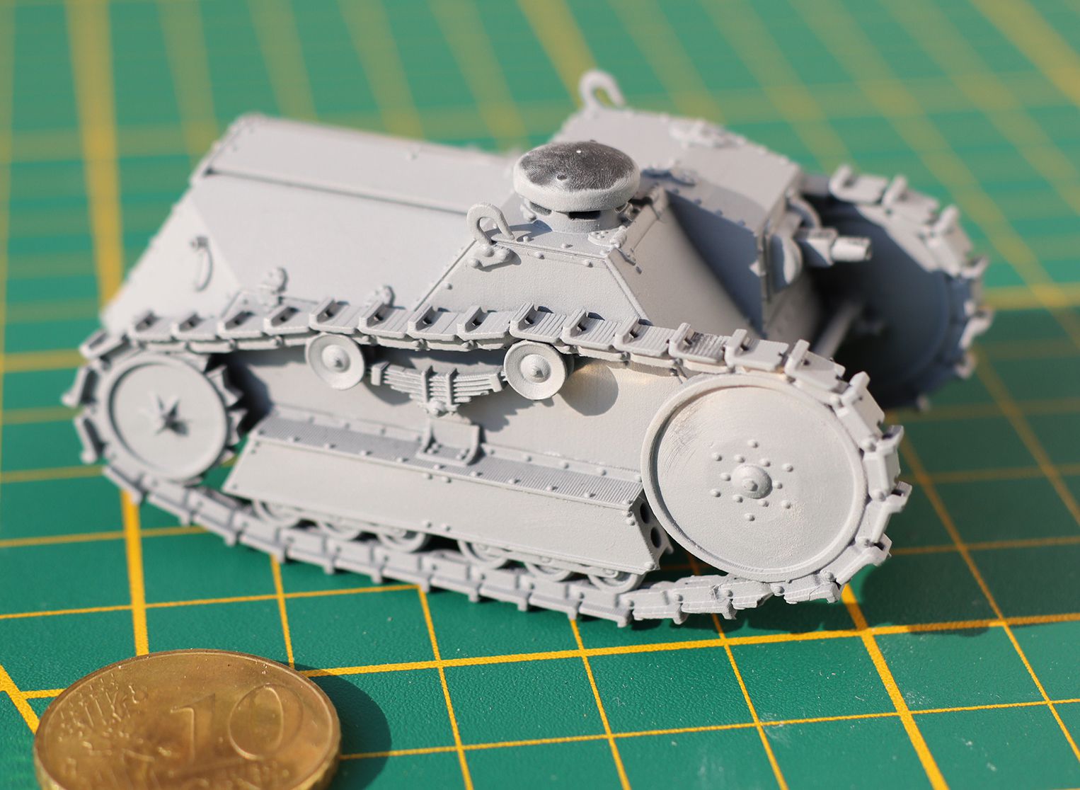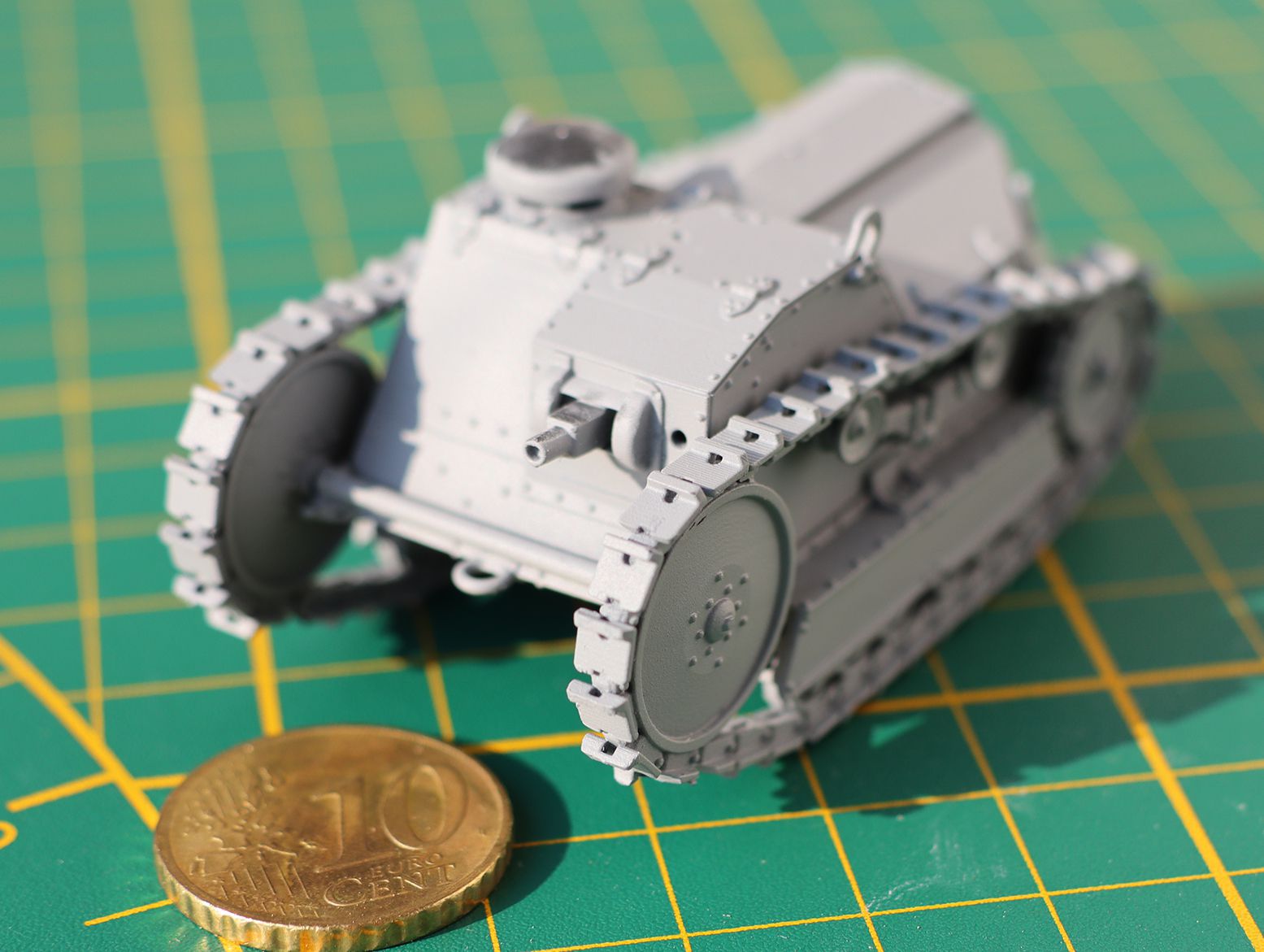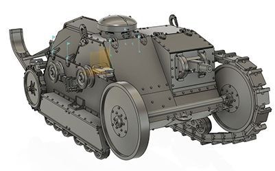 Quand Olivier est arrivé à une réunion de l’AMAC35 avec ses tirages 3D résine de ce petit tank tout mignon, et bien que je ne fasse pas de blindés, j’ai tout de suite été enthousiasmé par le concept, à la fois du blindé lui-même, son échelle, et la conception 3D DIY (Do It Yourself).