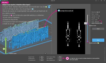 Le fichier .stl corrigé est importé dans un "sliceur" (ou Slicer), un logiciel qui le transforme en fichier lisible par l’imprimante 3d.