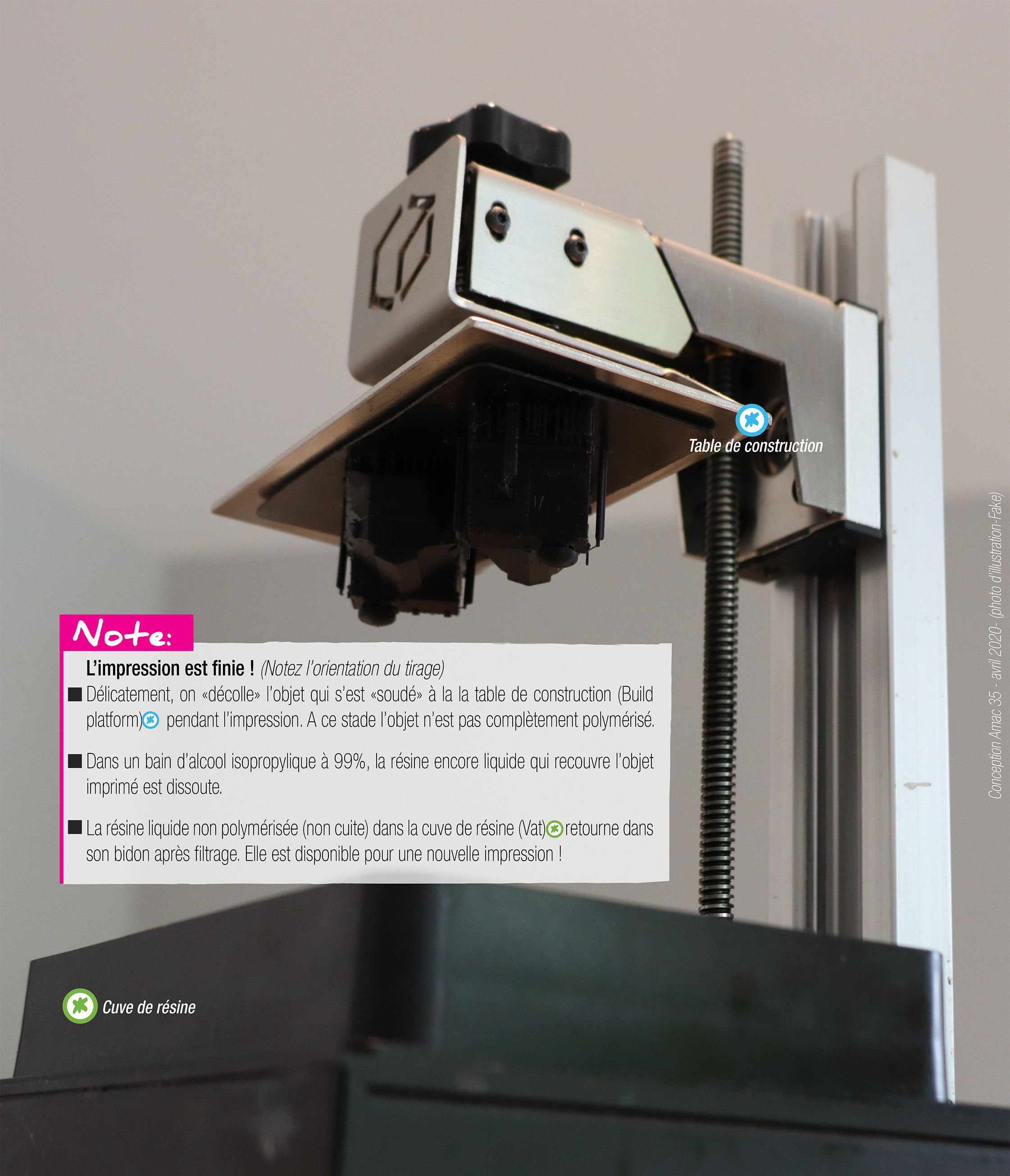 Cuve de résine (vat) : Contient la résine.