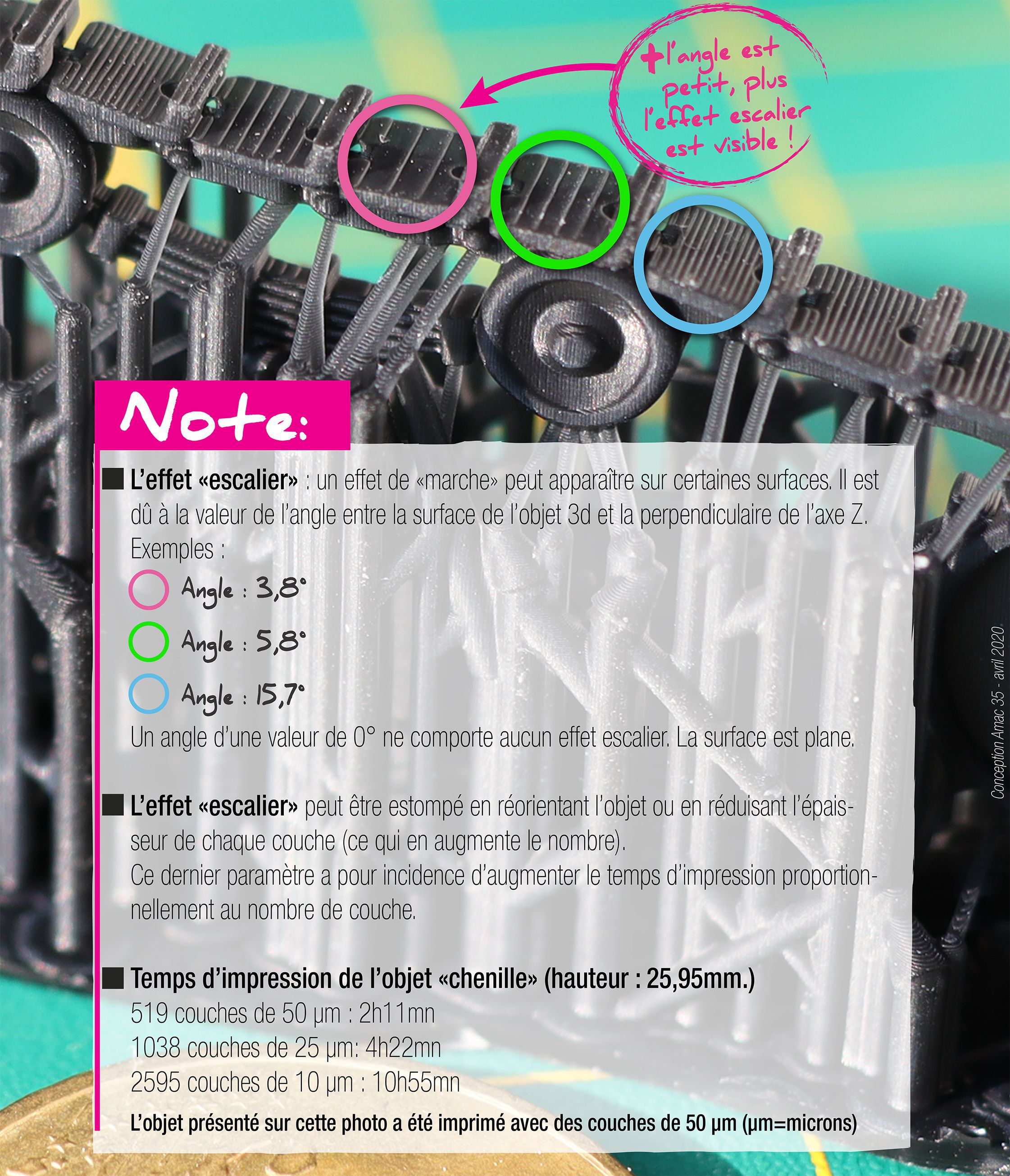 25 µm : implique un temps d’impression temps «t» x 2 (car 2x plus de tranches)