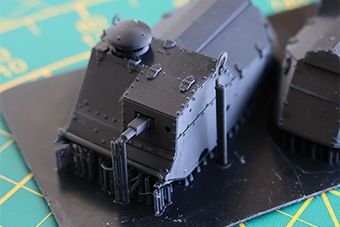 Seules les pièces grises ont reçu une couche de «Primer» Tamiya. La résine de tirage utilisée est de couleur noire.